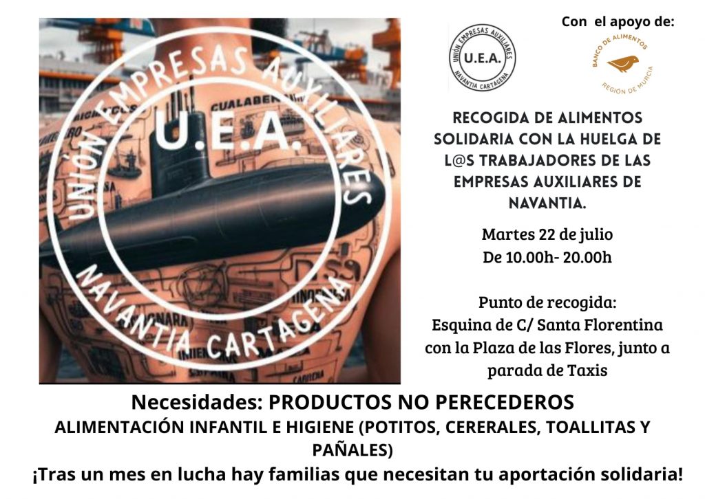 Los Voluntarios del banco de Alimentos de la Region de Murcia hemos querido estar las veces que asi nos sugerienron los empleados de las empresas auxiliares que estyas trabajando en la Empresa Navantia.